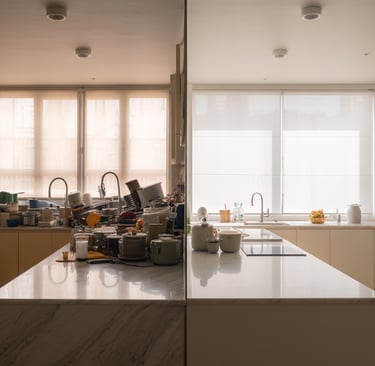 🔄 Finish: Wipe down counters and add one simple centerpiece (like a fruit bowl).